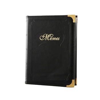 4 xem rõ ràng PVC đen PU da Bạc góc nhà hàng cafe menu bìa